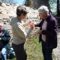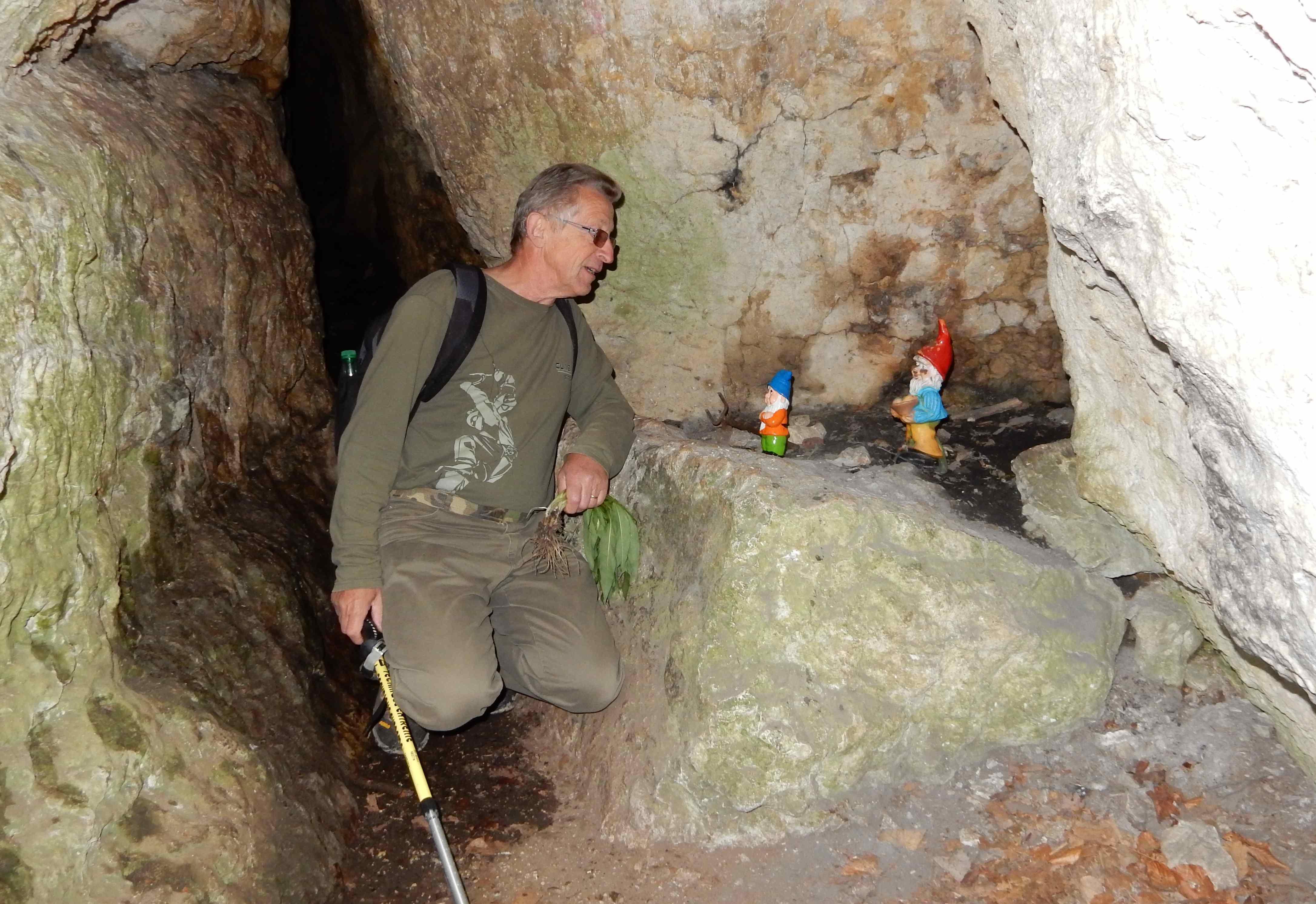 Puis départ pour la Grotte des Nains avec sa légende : « il y a fort longtemps vivait ici le peuple des nains. Ils vivaient éternellement jeunes avec un très joli visage et de beaux yeux. Visiblement très riches, car ils se montraient toujours très bien vêtus. Tous leurs instruments et outils étaient en argent fin. Ces nains se plaisaient à faire du bien à tous les gens de la contrée. A l’époque de la fenaison et des vendanges, ils quittaient leur monde souterrain et venaient aider les villageois. Une chose intriguait les humains : les nains étaient toujours vêtus de longues robes cachant leurs pieds quelle que soit la saison. Les enfants mirent du sable devant leur grotte pendant la nuit et découvrirent qu’ils avaient les pattes palmées. Comprenant la ruse les nains rentrèrent tristement dans leur monde souterrain et n’en ressortirent jamais ».