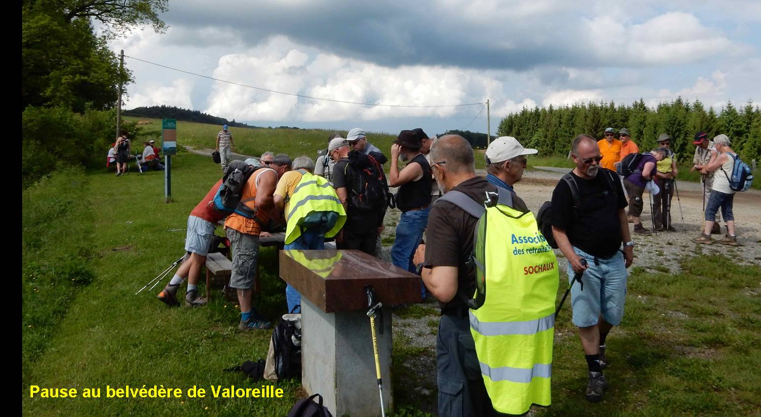 Premier arrêt au belvédère de Montaigu (à 900 m d’altitude). Grâce à ses tables d’orientation, il a permis de nous situer dans ce décor de montagnes et de vallées : éoliennes du Lomont, Chasseral et j’en passe.