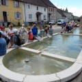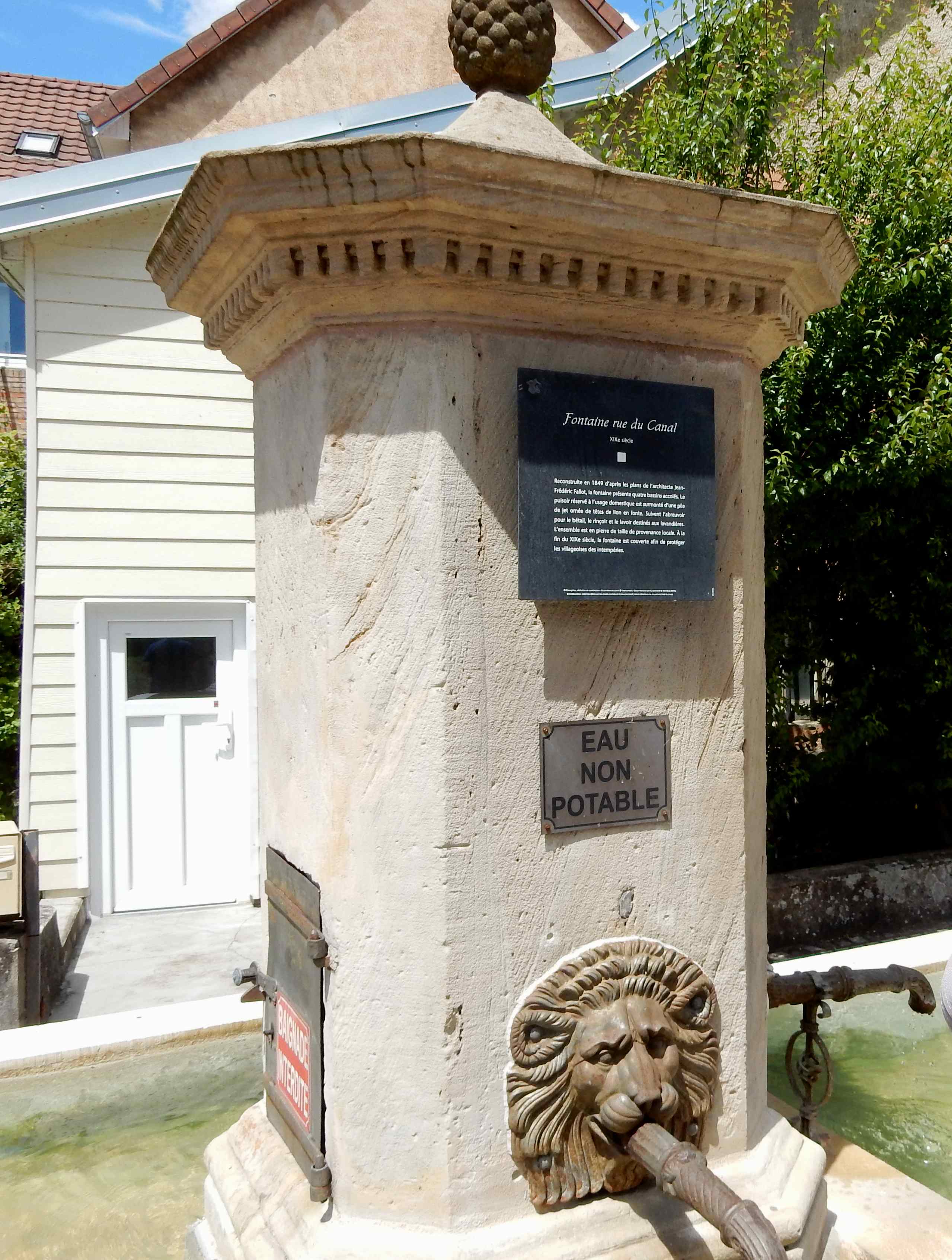 Terrain plat sur les 3/4 du parcours. Nous longeons les canaux, de la Haute Saône puis du Rhône au Rhin, avec un premier arrêt à la fontaine-lavoir de Fesches le Chatel.