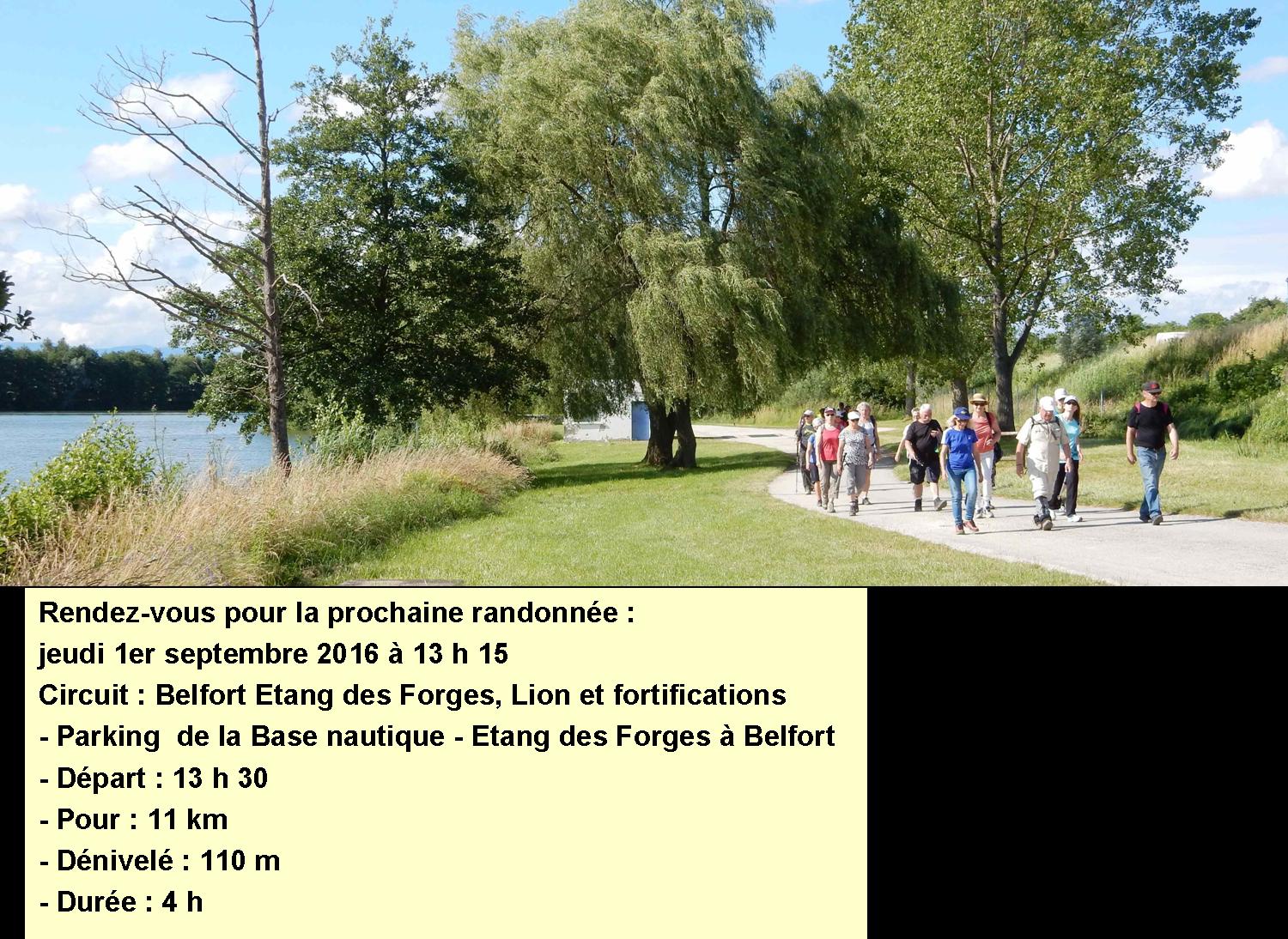 Rendez-vous pour la prochaine randonnée : jeudi 1er septembre 2016 à 13h15