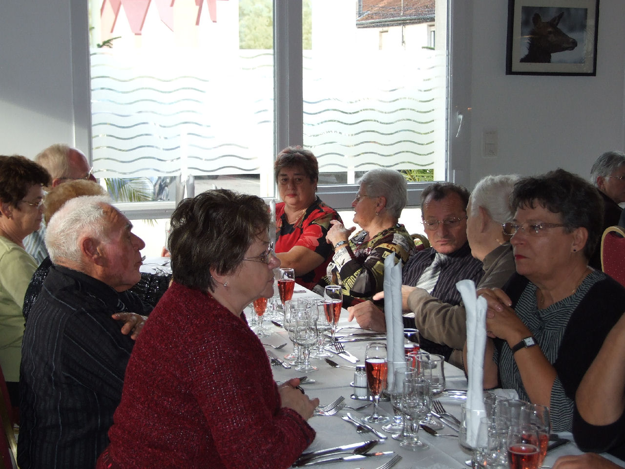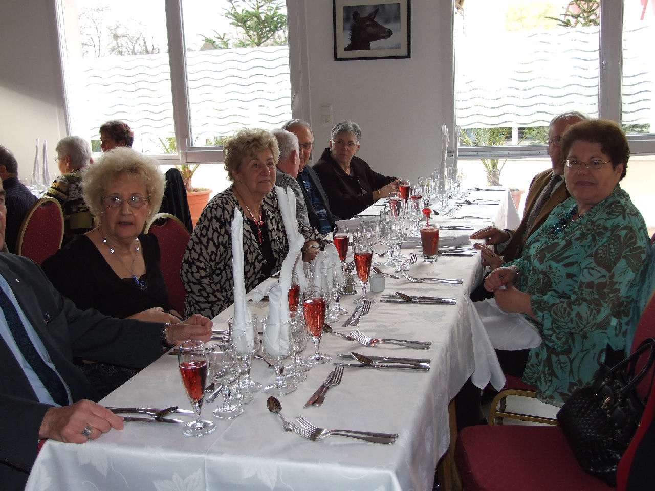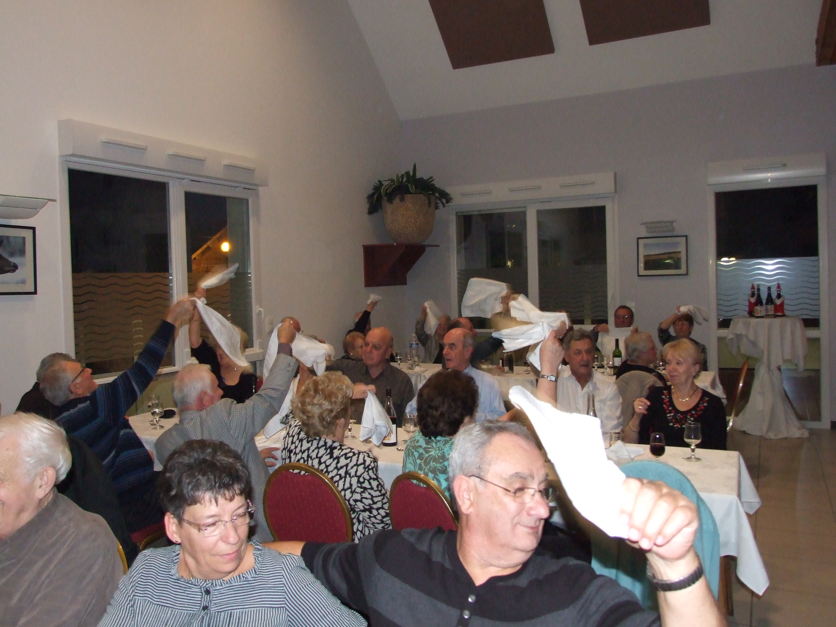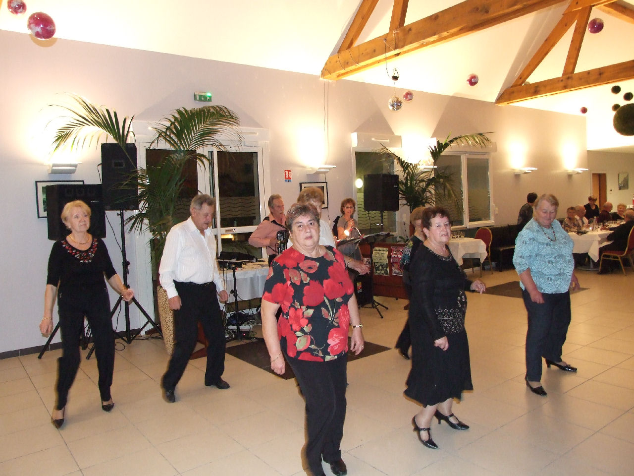 Rendez-vous ensuite au restaurant « Chez Berthe » à Seveux (70). Nous avons fait honneur à l’excellent repas que Berthe nous avait concocté. Côté divertissement, deux musiciens accompagnaient les convives qui dansaient… jusqu’à l’arrivée du dessert servi par le père Noël.