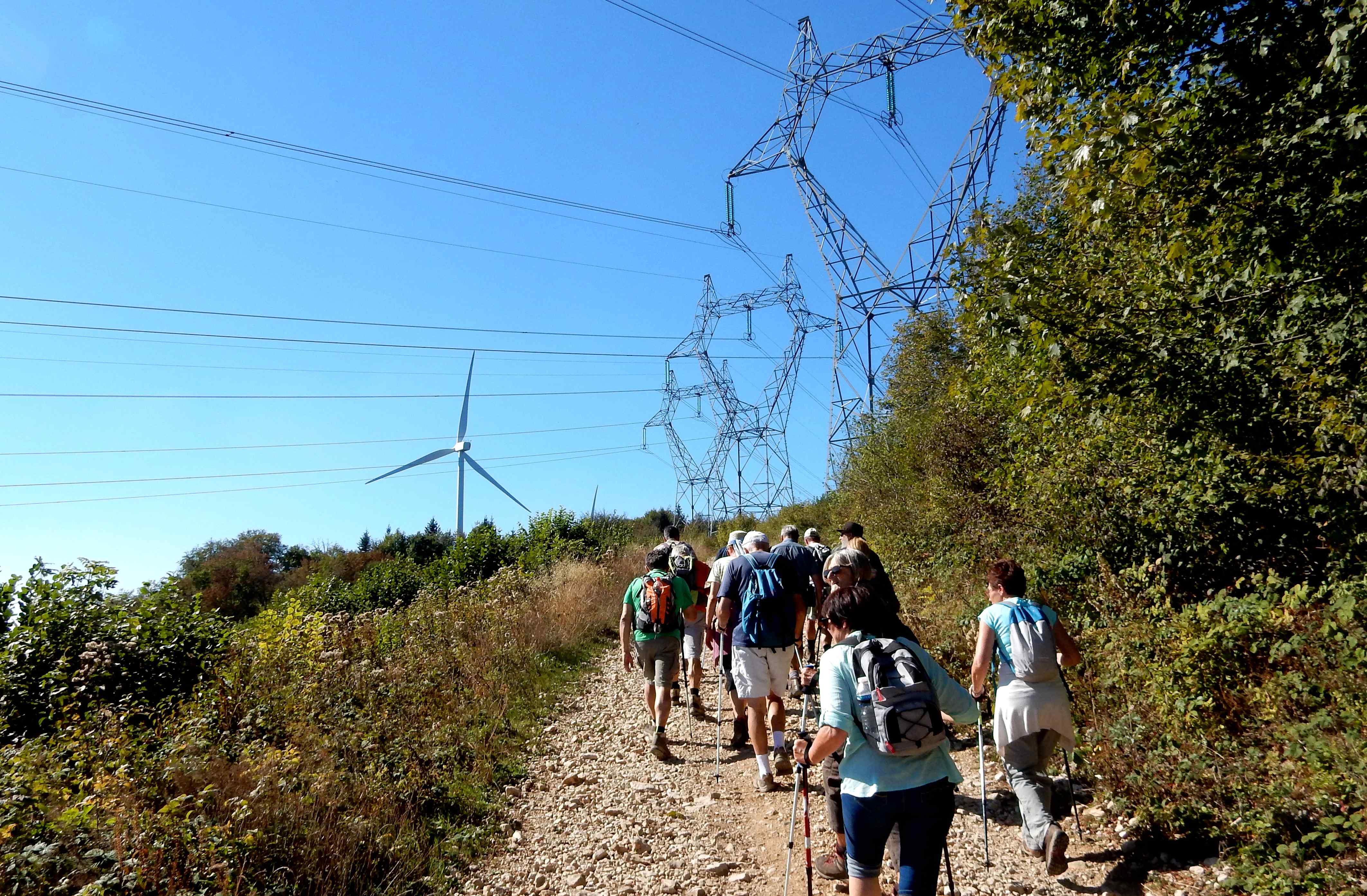 Nous accédons au site en gravissant la côte du Lomont pour découvrir les 10 premières éoliennes, installées en 2007, avant d’en apercevoir 5 autres. Le parcours est agrémenté de sept totems éducatifs et ludiques ayant pour thème la biodiversité de la montagne du Lomont.