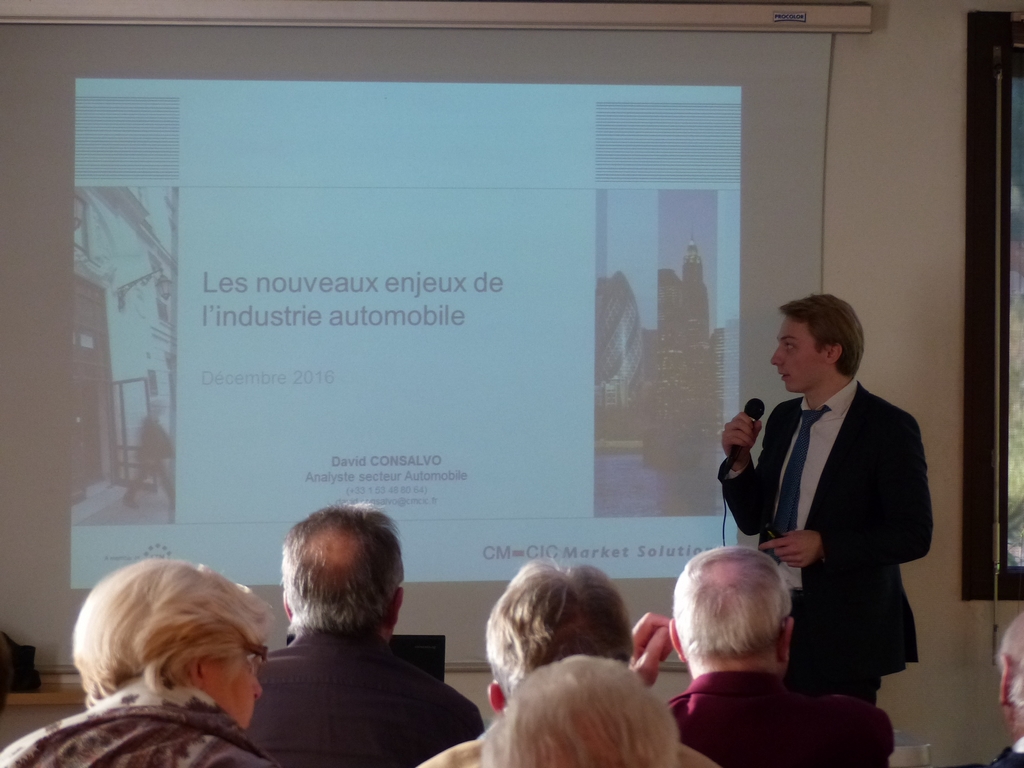 – Alexis DAUVERGNE, gérant d’actifs au CM-CIC Gestion de Nancy, a quant à lui expliqué le rôle de la bourse, des marchés financiers et l’intérêt d’investir en bourse. En sa qualité de gestionnaire de portefeuilles, il a éclairé la situation de façon forte intéressante