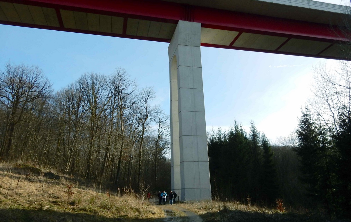 Nous passons ensuite sous le viaduc des Epenottes de la ligne TGV : 450 m de long, 8 piles de 10 à 40 m de haut.