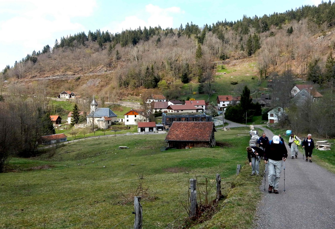 C’est sous l’église du 19e siècle que débute notre 3e randonnée de la saison 2017. Elle commence par une agréable montée en sous-bois.