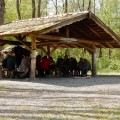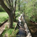 La Doller avec son déversoir nous attend. A quelques pas, un abri avec tables et bancs nous permet de nous restaurer. Après le casse-croûte qui n’a pas trop duré (la température fraîche nous commande de reprendre le circuit). Les bunkers ont subi les affres du temps, ce ne sont que des tas de blocs de béton. Plus loin, les restes du lavoir du « Dich » : date de 1 800 sur le canal qui alimente les usines textiles de Heimsbrunn, Morschwiller et Mulhouse. Ce lieu était devenu rapidement un lieu de rencontre des Burnhauptoises pour y faire les grandes lessives. Il a été opérationnel jusque dans les années 1900. Non loin de là, sur la Doller, un moulin à l’origine a été transformé en une usine électrique alimentant le couvent de l’Oelenberg et les Burnhaupt dans les années 1925-1928. La ferme du « Paradisvogel » propose ses asperges et ses légumes à cueillir soi-même. Sa boutique est achalandée en produits locaux, salaisons et viandes des fermes des vallées voisines.