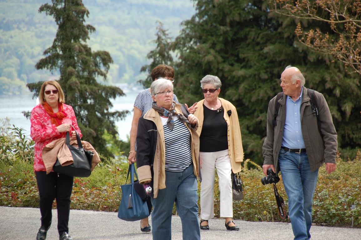 En guise d’apéritif : un repérage des lieux… étant donnée l’étendue du parc. Un avant-goût qui mettait le regard de nos visiteurs en éveil. Cet écrin de verdure, le panorama dégagé sur les Alpes, agrémentés du gazouillis des oiseaux, auguraient de la réussite de la balade à venir.