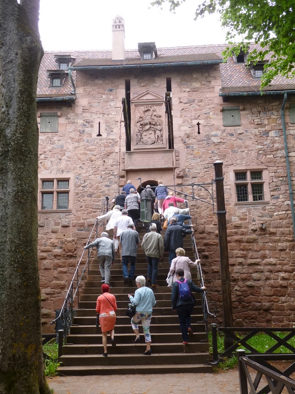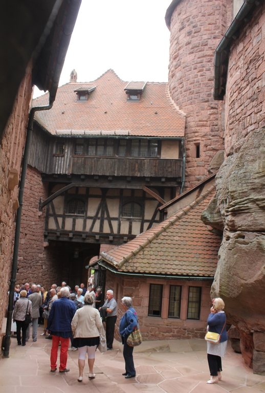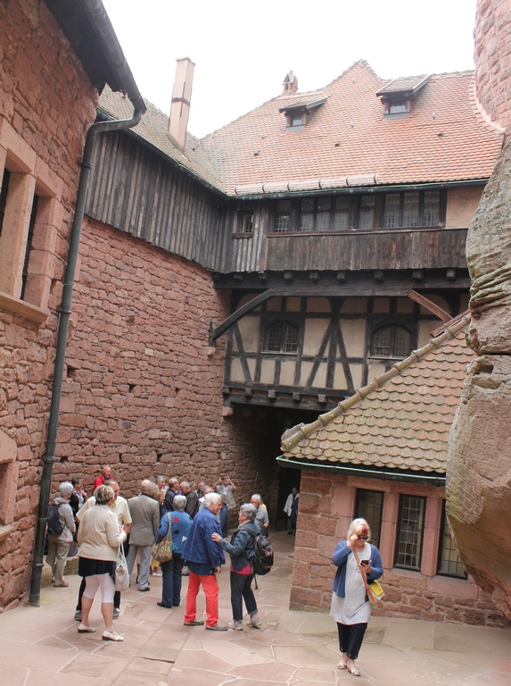 Une heure de route plus tard, nous voici arrivés au Château du HAUT-KOENIGSBOURG. La visite guidée de ce haut-lieu du tourisme alsacien chargé d’histoire présente des trésors de mobilier, des tapisseries murales, de superbes poêles traditionnels en céramique ainsi qu’une salle d’armes et des trophées de chasse sans oublier les superbes fresques en l’honneur du Kaiser Guillaume II à qui l’on doit la restauration de l’édifice.