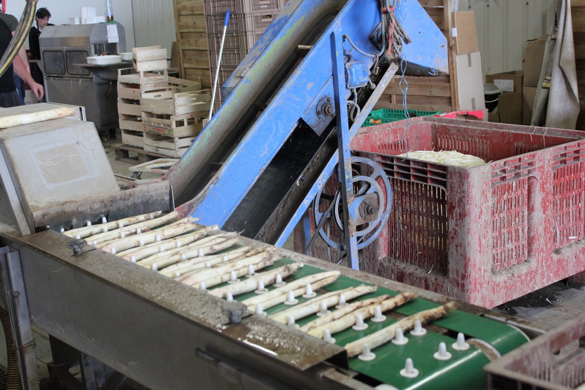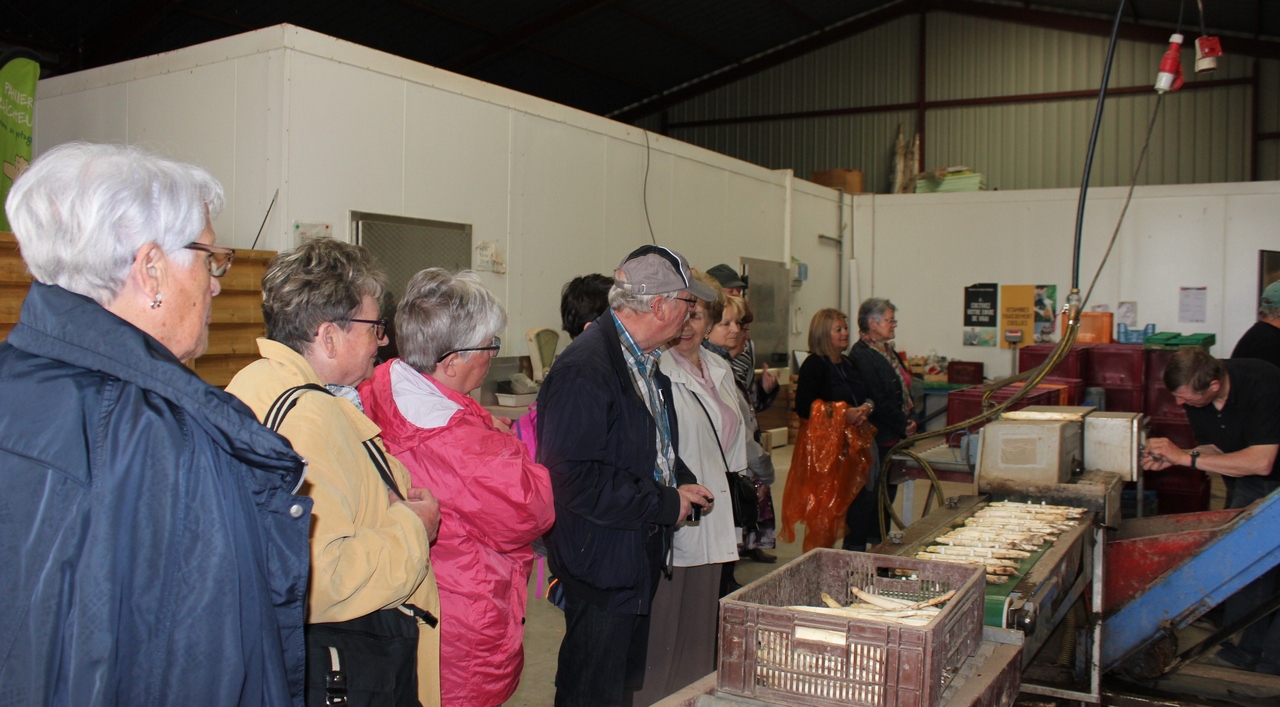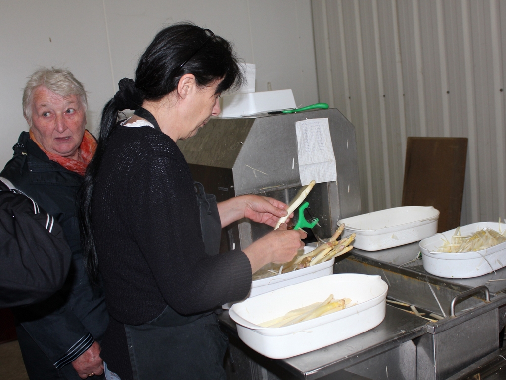 C’est maintenant au tour du fils de prendre la parole pour expliquer la culture qui s’est développée dans le village depuis des générations : « l’asperge blanche ». Un petit film, quelques explications puis c’est l’occasion de se rendre sur le terrain. Les questions fusent après la présentation pratique de l’exploitation maraîchère. Elle s’est poursuivie au local de conditionnement avant d’accéder à la boutique.