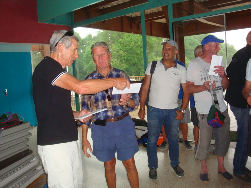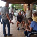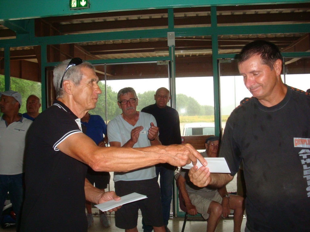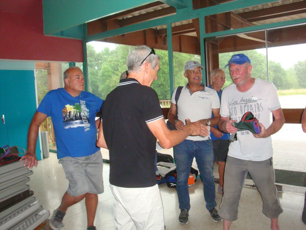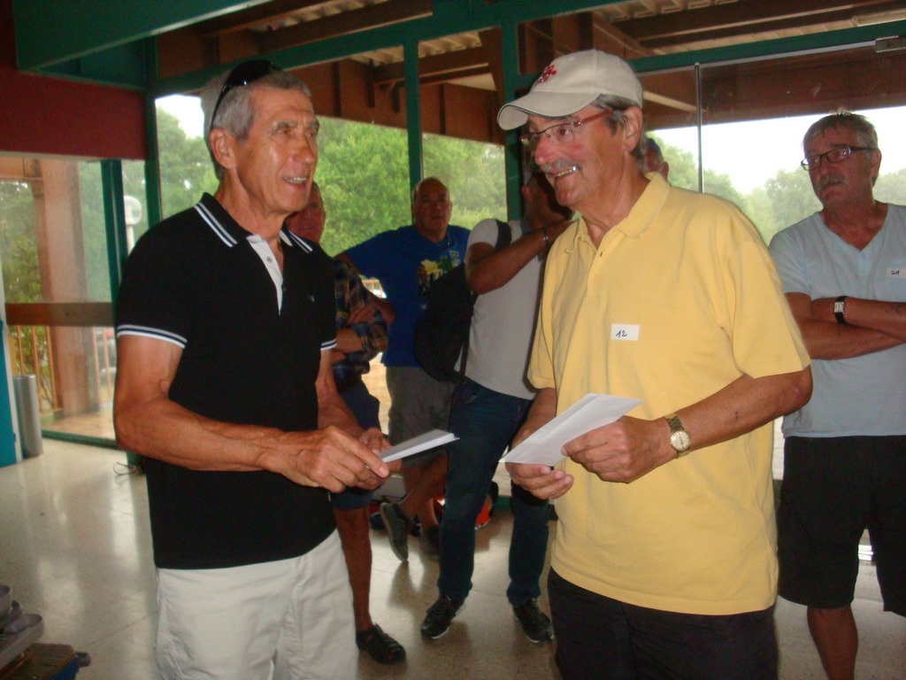 Fanny et les dieux de la pétanque étaient avec nous. Le soleil au zénith, puis le vent et la pluie, nous ont laissé terminer nos quatre parties avant que des trombes d’eau s’abattent sur le terrain. La buvette bien à l’abri a permis de patienter pendant cet épisode orageux.