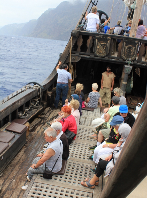 Une promenade à bord de la « Santa Maria » nous faisait découvrir depuis la mer (comme Christophe Colomb en son temps) le rivage découpé et les falaises dont nous avions déjà apprécié le panorama vu du haut. Randonner en forêt, le long des levadas (petits canaux d’irrigation) bordées de magnifiques fleurs, était l’occasion de constater que leur climat était propice à cette végétation luxuriante.