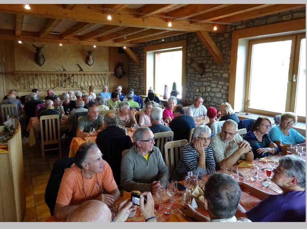 Second point fort : un repas bien mérité et attendu, avec menu typique comprenant croûte aux champignons des bois et morilles, jambon fumé et röstis.