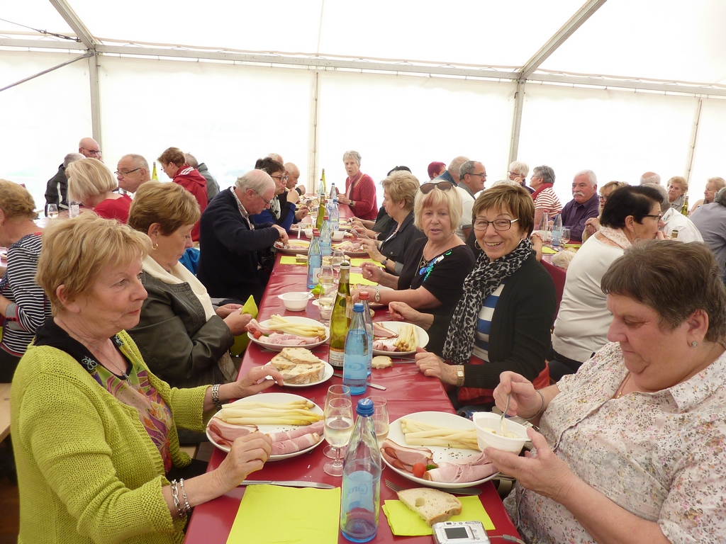 Après cette visite, direction Hoerdt pour l’incontournable repas « asperges à volonté » à la ferme Mathis. Certains ont dû attendre quelques minutes tant le rythme de demande de « rab » a eu du succès. Après quelques achats d’asperges, fraises et autres produits de la ferme, ce fut le départ pour la visite de la cave « Klein » dans la Vallée Noble à Soultzmatt.