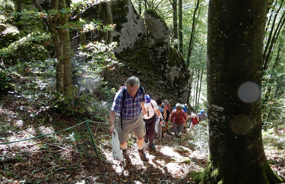 Ensuite, à travers collines et bois, nous sommes arrivés devant une falaise que nous avons franchie grâce à des escaliers (67 marches) qui nous ont demandé beaucoup d’efforts.