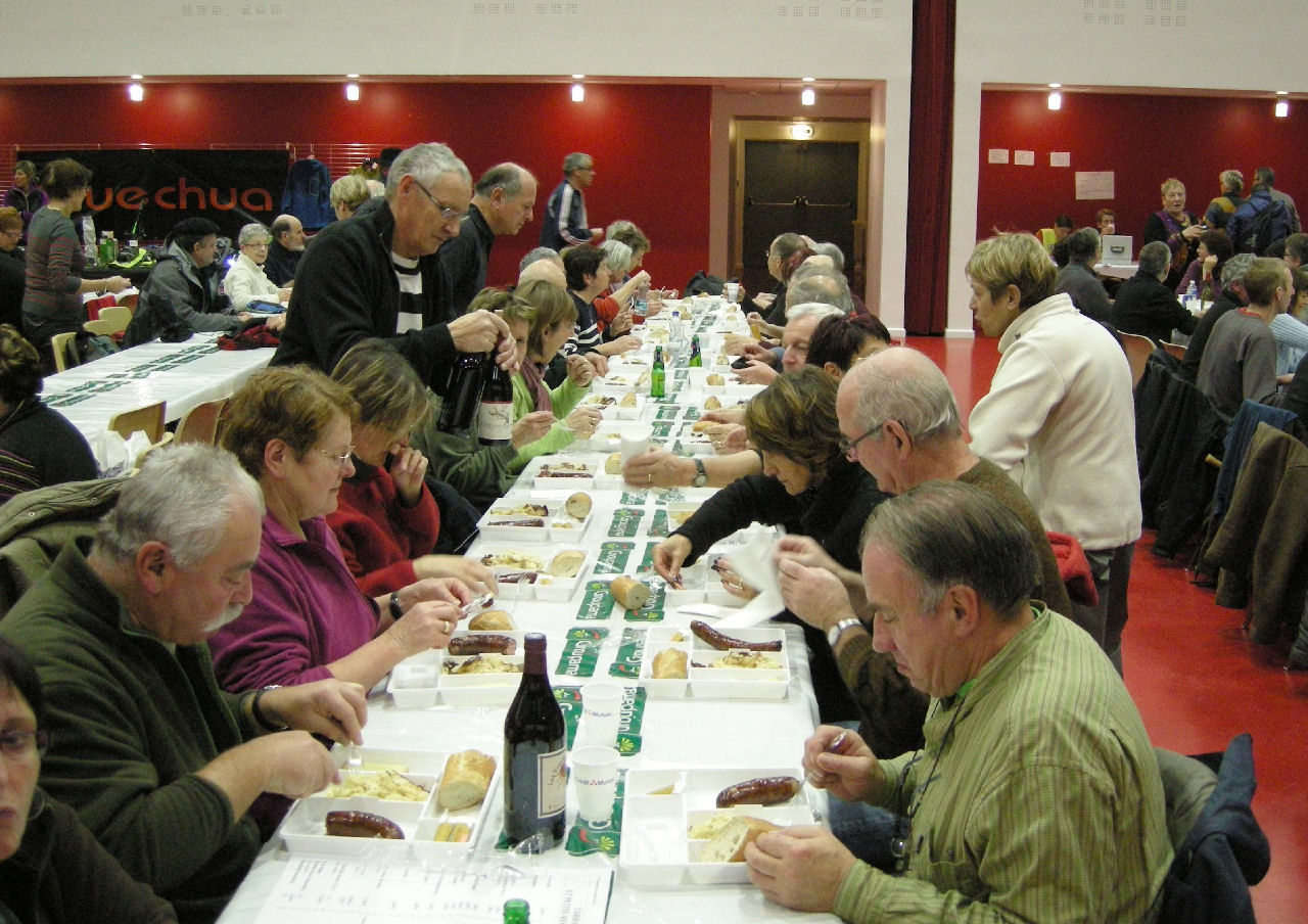 36 marcheurs de notre groupe resteront dans la salle de la Roselière pour y partager un repas dans une ambiance appréciée de tous, en assistant à la remise d’une Coupe offerte par la ville pour notre participation.
